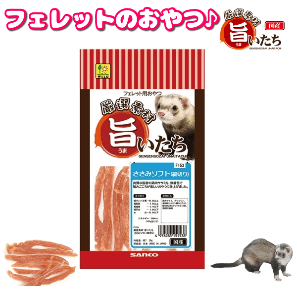 【メール便対応★3個まで同梱できるよ!】 賞味期限:2022/3/15 サンコー SANKO 旨いたち ささみソフト 細切り 30g フェレット おやつ 国産